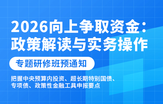 “2026向上爭取資金:政策解讀與實務(wù)操作”專題研修班預通知——把握中央預算內(nèi)投資、超長期特別國債、專項債、政策性金融工具申報要點 各有關(guān)單位:2026年是“十五五”開局之年,重大項目投資成為穩(wěn)定經(jīng)......